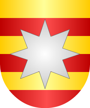 8.- Otros, según Vicente de Cadenas: Partido: 1º, en azur, once estrellas de oro; 2º, en oro, cinco panelas de sinople, puestas en aspa.