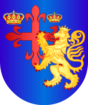 flordelisada, de gules, sostenidas por las garras de un león rampante,