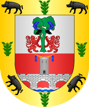 Noble y antiguo linaje de Guipúzcoa, con casa solara en Azcoitia. Otra tuvo en Isasondo y otra en Vergara, llamada Torre de Recalde. Una rama que pasó a Bilbao fundó allí nueva casa, con líneas en Portugalete. Otra casa de Recalde radicó en el concejo de Güeñes, del partido judicial de Balmaceda. Armas 1.- Las de la casa de Azcoitia y rama de Bilbao: De gules, con un águila real de su color y coronada, picando una trucha sobre una peña que emerge de un río. Bordura de plata con ocho lobos de sable. 2.- Las de la casa de Vergara: Cortado: 1º, de plata, con un árbol de sinople y dos leones de gules empinados al tronco. Nacientes de la copa del árbol, dos brazos armados de azur, uno a cada lado, con un ala o vuelo de sable en la mano; inclinados ambos hacia abajo. Y 2º, de gules, con una torre de plata sobre un puente de tres ojos del mismo metal, puesto en ondas de agua de azur y plata. En las almenas de la torre, dos banderas de azur, de dos picos, con filete o listón de oro, una a cada lado. Bordura general de oro con cuatro jabalíes andantes de sable y cuatro ramos de sinople. 3.- La rama de Isasondo usó: En campo de azur, un manzano de su color frutado de oro, y dos jabalíes, también de su color, empinados al tronco del manzano. 5.- Las de los Recalde del concejo de Güeñes: Partido: 1º, de plata, con un árbol de sinople y cinco panelas del mismo color puestas en sotuer, una en el tronco y dos a cada lado, y en punta ondas de agua de azur y plata, y 2º, de oro, con tres fajas de azur. 6.- La casa-palacio de Recalde, en el lugar de Salinas Cabe Pamplona, ostentaba: "Seis lobos, una cruz y tres calderos". Bibliografía - Diccionario Heráldico y Genealógico de Apellidos Españoles y Americanos, por Alberto y Arturo García Carrafa. Compilación documental por cortesía de D. Antonio Sánchez Sánchez |