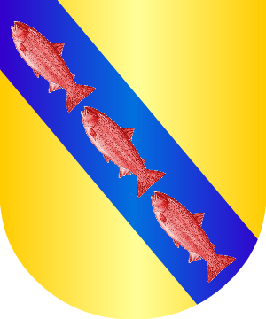 2.- Algunos modificaron los esmaltes pintando el campo de azur, la banda de oro y los peces de gules.