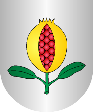 1.- Las de la casa de la villa de Calella: En campo de oro, una banda de azur, cargada de tres peces de plata.