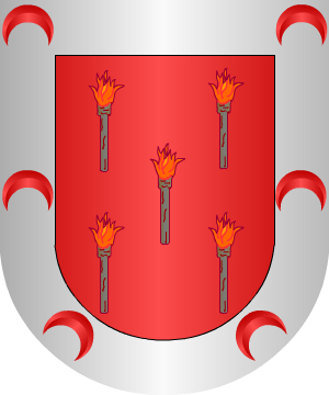 Terán Tarán La casa solar de este linaje (que en antiguos documentos aparece escrita "Therán", forma ésta ha mucho tiempo desaparecida) fue una de las más esclarecidas e infanzonas de la Montaña de Santander. Todos los escritores que de ella tratan sitúan su primitivo solar en el valle de Cabuérniga, pero omitiendo el punto o lugar de ese valle en que sus fundadores lo levantaron. Lo más probable es que fuera en el lugar denominado Terán, del valle de Cabuérniga, y que el nombre de dicho lugar lo tomara por apellido el linaje o que éste le diera el suyo, como era también norma frecuente en antiguos tiempos. Lo comprobado es que la primitiva casa de Terán, ya desaparecida, radicó en el valle de Cabuérniga y que esa opinión es unánime entre los autores que hemos consultado. Solamente el Licenciado Juan Arce de Otálora pudiera desviar de esa general creencia a quien le leyere, por haber escrito lo que sigue: "A cinco leguas de San Vicente, subiendo a Liébana, está la Casa solar de Terán". Datos tan incompletos e imprecisos, que no desmienten los que anteceden. En Castilla y León tuvo casas solares en Frechilla y Marcilla de Campos (Palencia), documentadas en el siglo XVI; en Cataluña en Dosríus (Barcelona), su dueño N. Terán, citada en la Fogueración catalana de 1553, y en Galicia. Juan Enríquez de Terán y Navarra, natural de Carrión de los Condes (Palencia), fue Caballero de la Orden de Alcántara, en la que ingresó en 1633. Probaron su limpieza de sangre para ingresar como religiosos en la Orden de Santiago: Pedro Terán Blanco, natural de Fuentes de Nava (Palencia), del Convento de San Marcos de León, en 1626; y José de Terán Blanco de Salcedo, natural de Fuentes de Nava, del Convento de San Marcos de León, en 1638. Francisco de Terán, natural de Cabezón de la Sal (Cantabria), Prior de Tocina, fue religioso de la Orden de San Juan de Jerusalén, en la que ingresó en 1762. Probaron su nobleza ante la Sala de los Hijosdalgo de la Real Chancillería de Valladolid: Agustín y Pedro Terán, vecinos de Cigales (Valladolid), en 1638; Ambrosio de Terán. vecino de Cameno (Burgos), en 1569; Andrés de Terán, vecino de Aguilar de Campoó (Palencia), en 1662; Diego de Terán, vecino de Amusco (Palencia), en 1590; Francisco Terán, vecino de Pancorbo (Burgos), en 1586; Francisco de Terán, vecino de Salientes. en 1725; Francisco Antonio Terán, vecino de Busto, de la jurisdicción de Santillana, en 1819; García Terán, vecino de Cervera de Pisuerga (Palencia), en 1566; García de Terán, vecino de Cervera de Pisuerga, en 1557; Juan de Terán, vecino de Cotillo, de valle de Anievas (Cantabria), en 1571; Juan de Terán, vecino de Villabrágima (Valladolid), en 1621; Juan de Terán, vecino del valle de Cabuérniga (Cantabria), en 1578; Pedro y Toribio de Terán, vecinos del concejo de Baró (Cantabria), en 1562: Sebastián Terán, vecino de Reinosa (Cantabria), en 1537; Tomé Terán Ceballos, vecino de Aguilar de Campóo, en 1563; Francisco de Terán y Herrán, natural de Fuentes de Nava (Palencia) y vecino de Villamañán (León), en 1549; Antonia de Terán de Molledo, vecina de Segovia, en 1589; Juan de Terán de Molledo, vecino de Palencia, en 1575; y Francisco Antonio Terán y Quevedo, vecino de Puente Pumar, en 1792. Antonio y Crisóstomo Terán, vecinos de Jerez de la Frontera (Cádiz), probaron su nobleza ante la Real Chancillería de Granada en 1618. Armas 1.- Las de la casa del valle de Cabuémiga: En campo de oro, tres bandas de azur. En el cantón siniestro del jefe, una estrella de gules, y otra del mismo olor en el cantón diestro je la punta. Bordura de plata con cinco cabezas de serpiente de sinople, degolladas. Estas armas experimentaron diversas modificaciones, se lo comprueba la forma en que las describen distintos, tratadistas. 2.- Manuel Antonio Brochero, Cronista y Rey de Armas, un real despacho confirmatorio de blasones, expedido en Madrid, el 22 de Enero de 1755, dice que las tres bandas son de gules; la punta del escudo de plata con tres fajas ondeadas de azur, y la bordura, también de plata, con cinco cabezas de reyes moros, al natural, alternando con cinco cabezas de serpiente de sinople degolladas. Otálora las describe así: "Tres bandas de oro de esquina a esquina en campo verde, con dos estrellas que llaman los polos". No obstante los impropios y confusos términos de esta descripción, es evidente que se trata de una variante simplificada de los anteriores blasones, puesto que suprime la bordura, omite algunos esmaltes y varía otros. 3.- En el expediente de pruebas de nobleza del Caballero de Santiago y Sargento Mayor, Pedro Gutiérrez de Mier y Terán, figura el siguiente escudo cuartelado como propio de la Casa de Cabuérniga y descrito así: "Primero, tres barras y dos estrellas en los polos; segundo, un águila y una caldera; tercero, unas ondas, y cuarto, dos leones". Se omiten todos los esmaltes, se llama, indebidamente, barras a las bandas y polos a los cantones siniestro del jefe y diestro de la punta, y se acrecienta el escudo con dos cuarteles, el segundo y el cuarto, que contienen piezas, probablemente de alianzas, que no figuran en otros blasones de Terán. 4.- Los de la casa del lugar de Lombraña, del valle de Polaciones (Cantabria), usaron este otro escudo cuartelado, que encontramos descrito en la siguiente forma: "1º, una cruz llana; 2º, tres flores de lis puestas en triángulo mal ordenadas; 3º, tres barras, y 4º, una torre siniestrada de una flor de lis". En este escudo sólo figuran como piezas propias de las armas de Terán, las contenidas en el tercer cuartel y denominadas equivocadamente barras en vez de bandas. 5.- Los de la casa del lugar de Arenal, del valle de Penagos (Cantabria), traían, según otras descripciones que reproducimos: "Tres fajas; en los polos dos estrellas, y en punta otras tres fajas: orla con cinco cabezas de sierpe". También se omiten todos los esmaltes; se sustituyen con fajas 